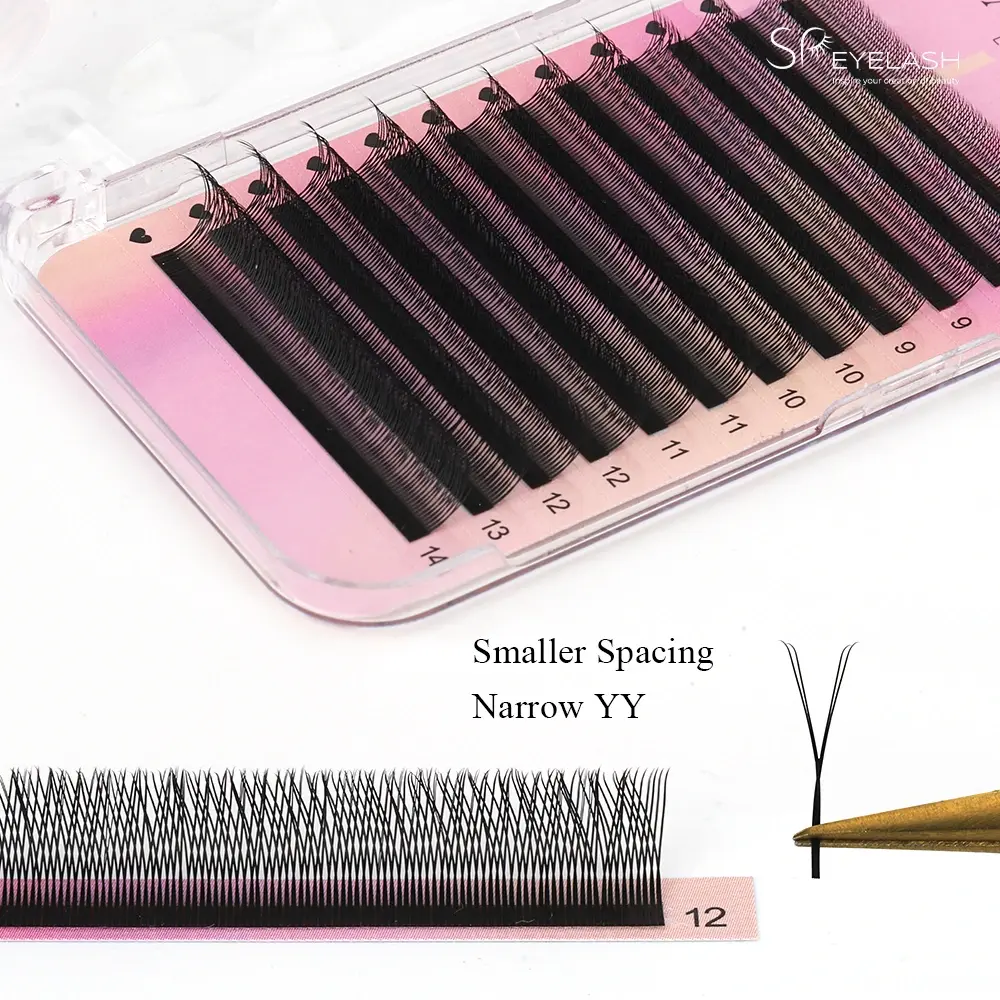 Ənənəvi yy formalı kirpiklərlə müqayisədə, təkmilləşdirilmiş dar yy kirpiklər uzantıları, daha kiçik bir açılış və hamar bir xətlər, problemsiz birləşdirilmiş və daha həcmli kirpik effekti yaradır. Yığcam tənzimləmə təbii, lakin dramatik bir dolğunluq yaratmaq, kirpiklər arasındakı boşluqları azaldır. Daha yüksək sıxlıqlı kirpik tənzimləməsi daha dərin və daha dolğun kirpik xətləri, daha dar fan dizaynı səliqəli və daha da görünüşü təmin edir. Bu vaxt, uzadılmış kirpik qrupu ilə cütləşdirilmiş kiçik fan bazası daha böyük bir bağlama sahəsi yaradır, bununla da geniş fanar W formalı kirpiklər ilə baş verə biləcək qarışıqlıq və qeyri-bərabərlikdən çəkinir.