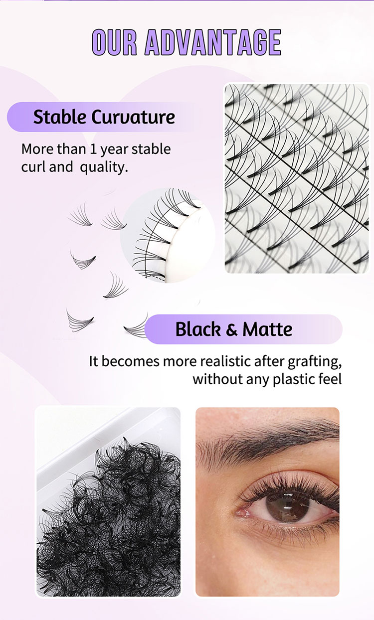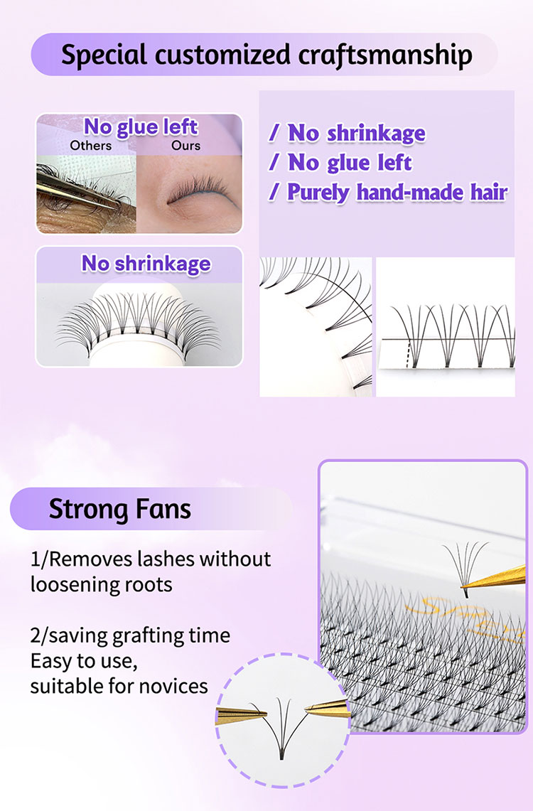Bu kirpiklərin fan formalı dizaynı möhkəmdir. Çıxarıldıqda, təbii kirpiklərin köklərini boşaltmayacaqlar. Bu həm təhlükəsizlik, həm də etibarlılıq təmin edən müştərilərin təbii kirpiklərinin bütövlüyü və sağlamlığını qoruyur.