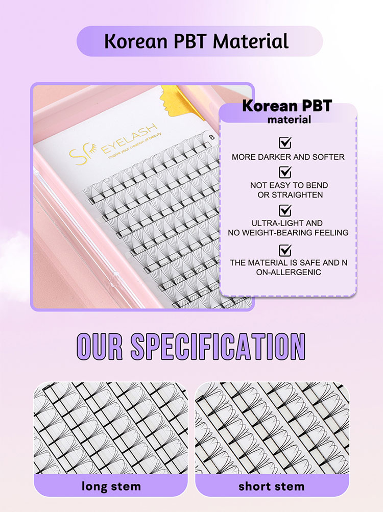 SP kirpik tərəfindən 7D qısa köklü kirpiklər 100% Koreya PBT materialından hazırlanmışdır. Bu xüsusi material kirpikləri daha yumşaq və qaranlıq edir, daha təbii və zərif bir görünüş yaradır, incə məsləhətlər verən geniş azarkeşlər edir. Mükafat keyfiyyəti müştərilər üçün lüks və rahat bir təcrübə təcrübəsini təmin edir.