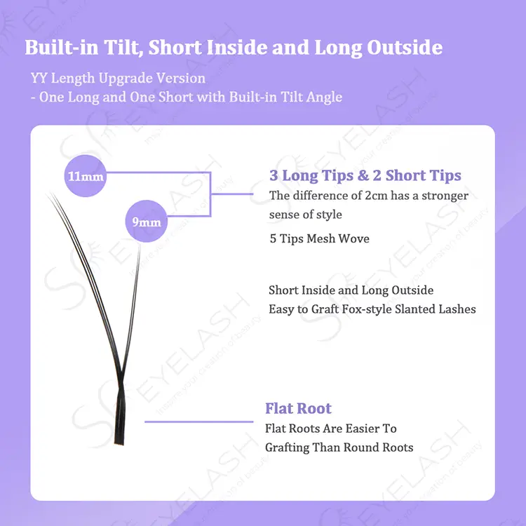SP kirpik uçan yy yy göz qapağının yenilikçi tülkü göz dizaynı 5 ballıq mesh toxuculuq texnologiyasından istifadə edir, təbii olaraq 3 uzun və 2 qısa kirpik paylama yolu ilə göz quyruğunu uzatır. 0.07mm ultra incə lif bazası, ağır görünən 8-15 mm uzunluqda olan 8-15 mm uzunluğunlu bir seçim təmin edən tüklüliyi təmin edir. Unikal gümüş folqa bazası dizaynı saç tökülməsini daha rahat edir və uyğun kart, kirpik texniklərinin işləmələrinin səmərəliliyini çox yaxşılaşdıraraq parametrləri açıq şəkildə göstərir.
