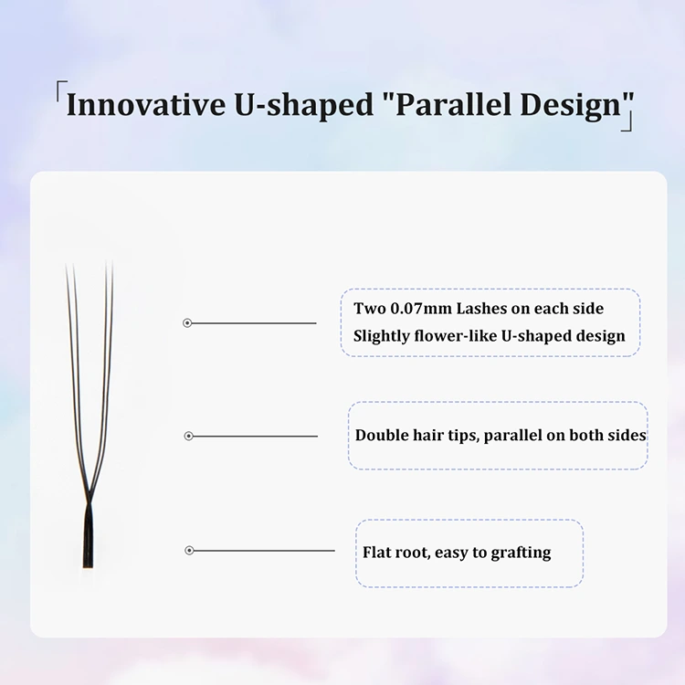 U şəkilli ikiqat işarə dizaynı yapışan əlaqə nöqtələrini artırır, möhkəmliyi və davamlılığı artırır və ənənəvi Y şəkilli kirpiklər ilə müqayisədə daha çox üstünlüklərə malikdir.